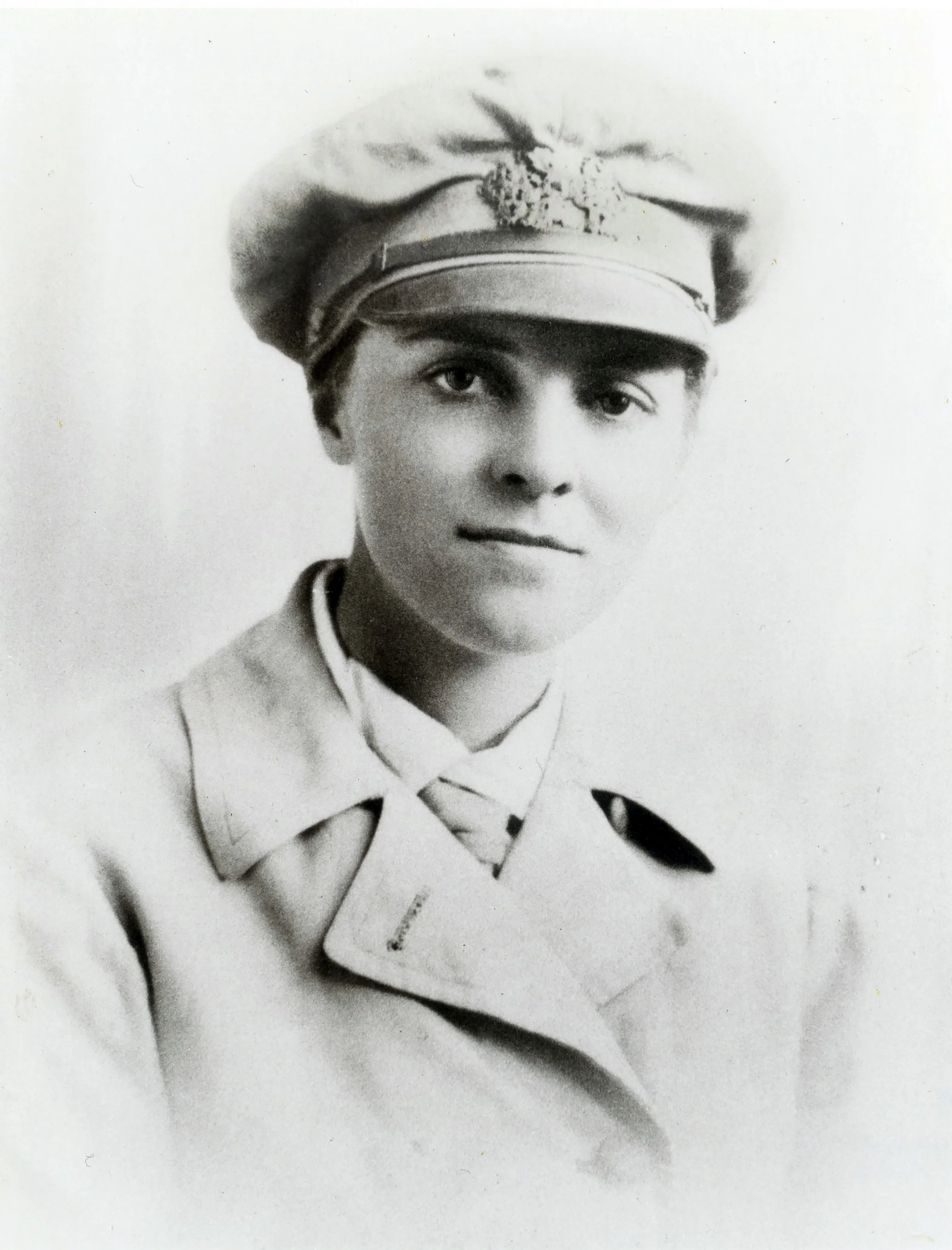Black and white portrait of Alice Anderson in a chauffeur's uniform wearing a cap. Credit: University of Melbourne archives.